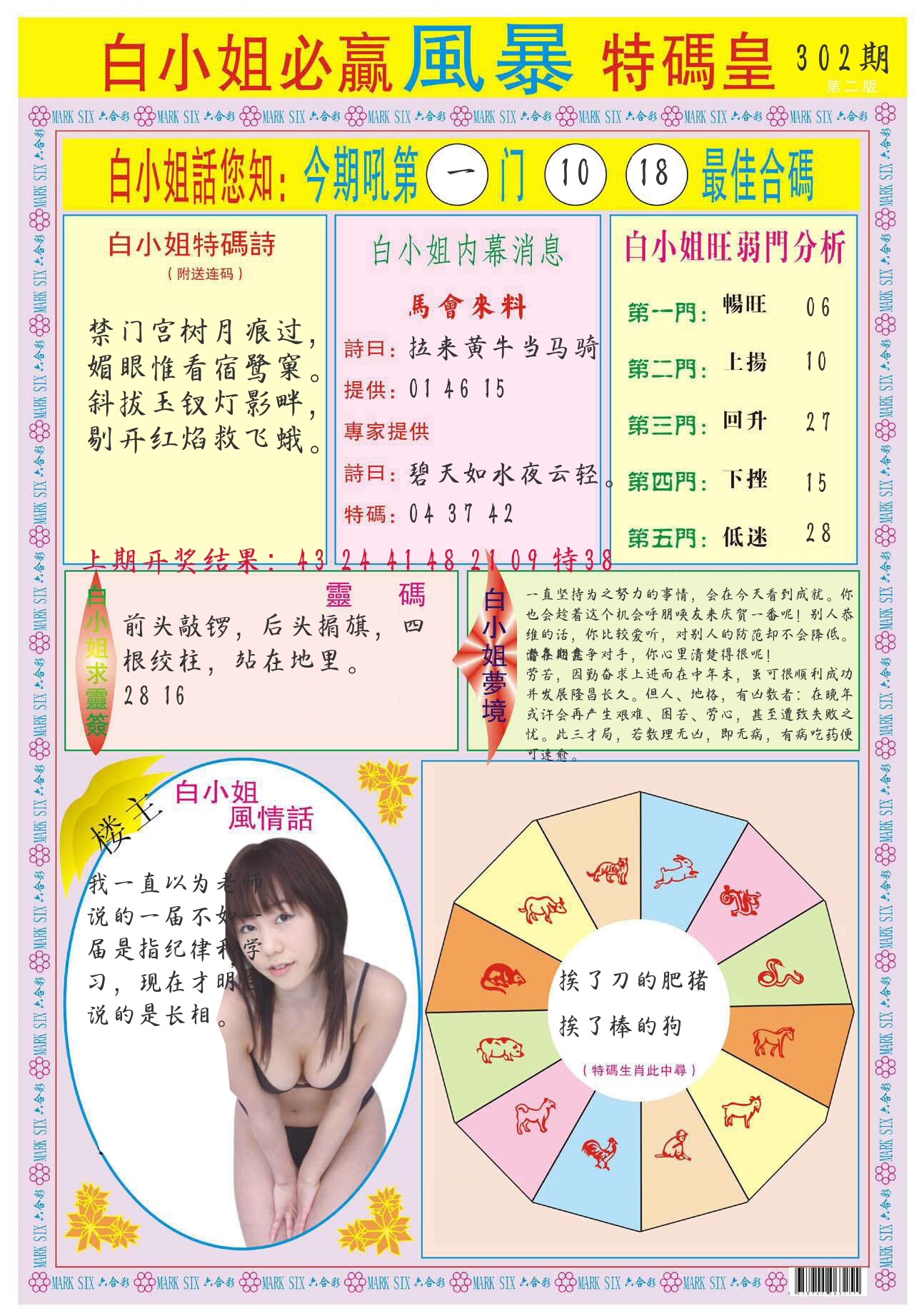 本期推荐一肖一码:( 鸡10 )100%,中! |