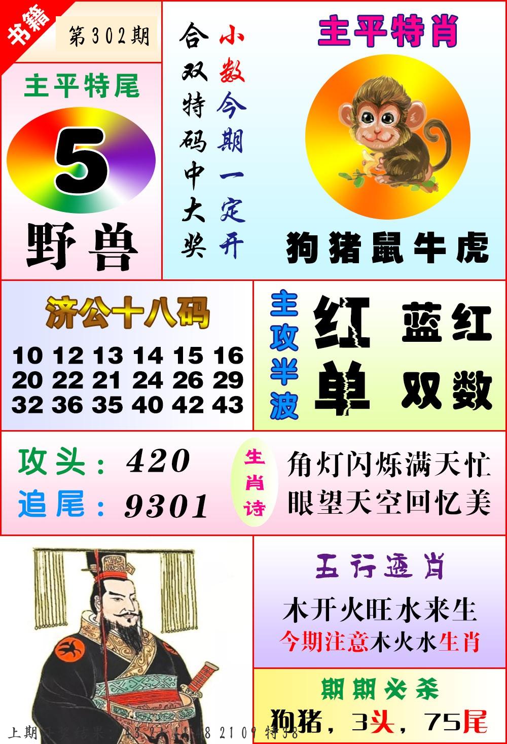 | 0301期推荐五肖: 狗牛蛇马猴 ~~稳准狠 |