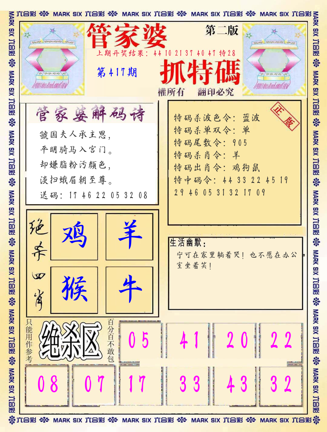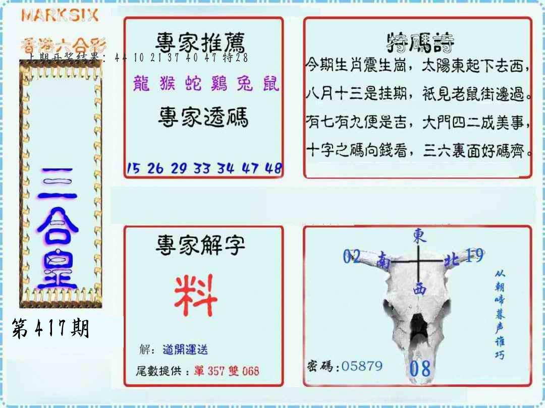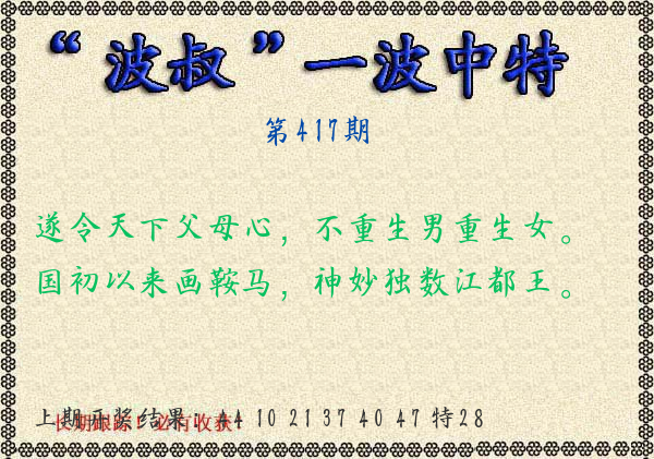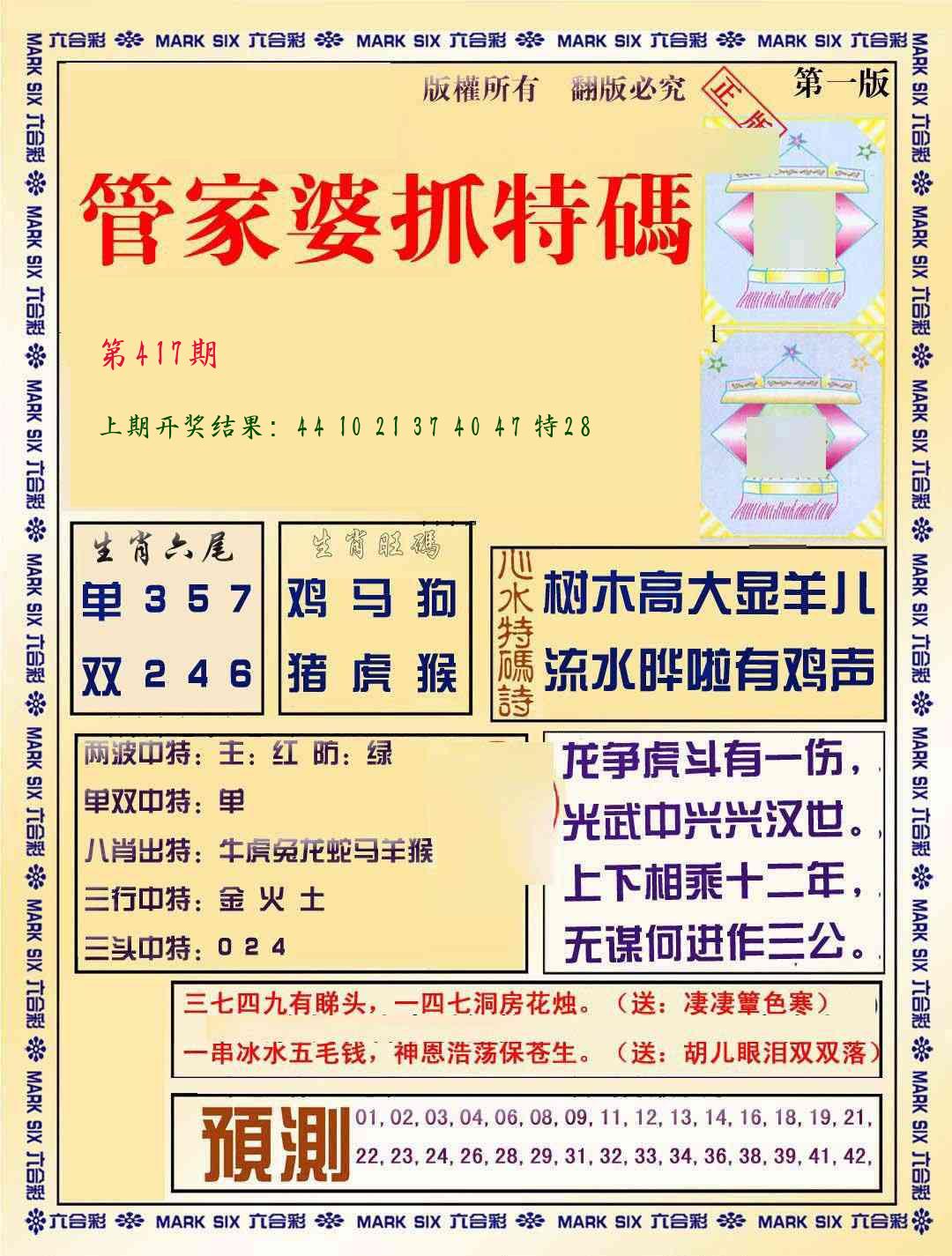 0417期 家 【马羊牛】 野 【虎猴龙】开 ??????? |