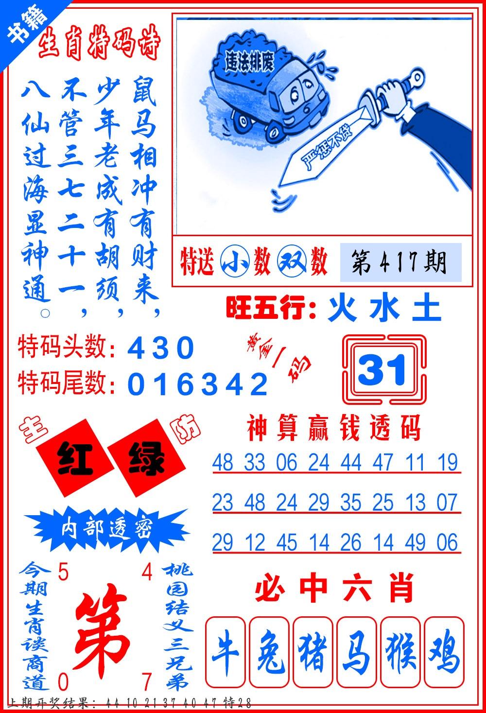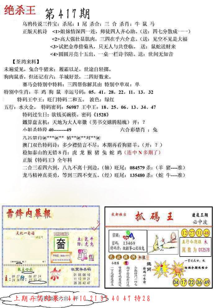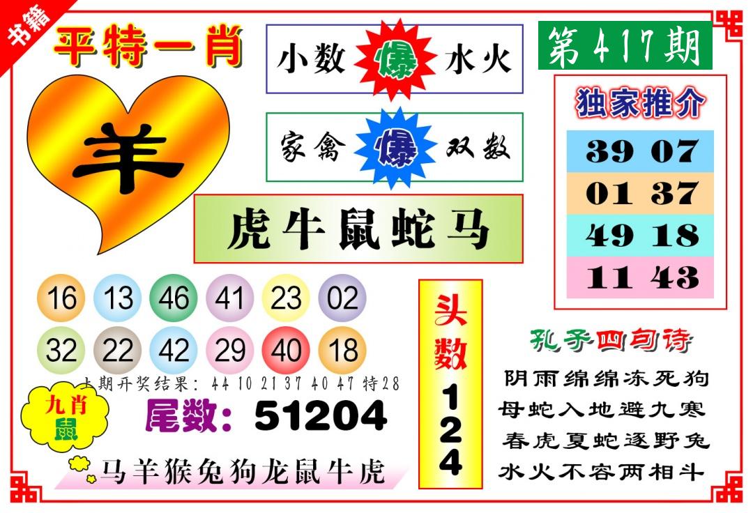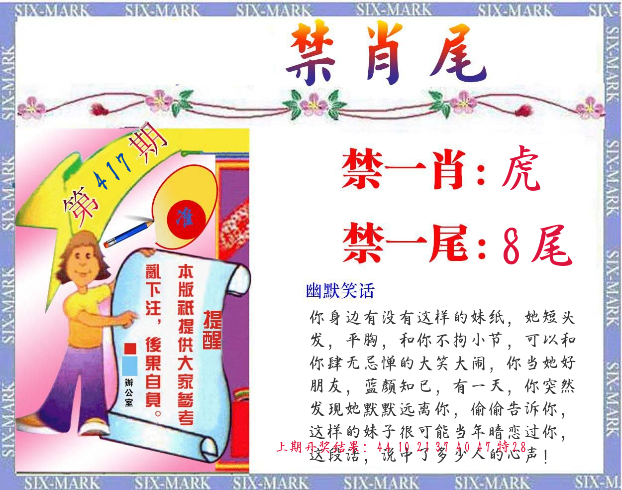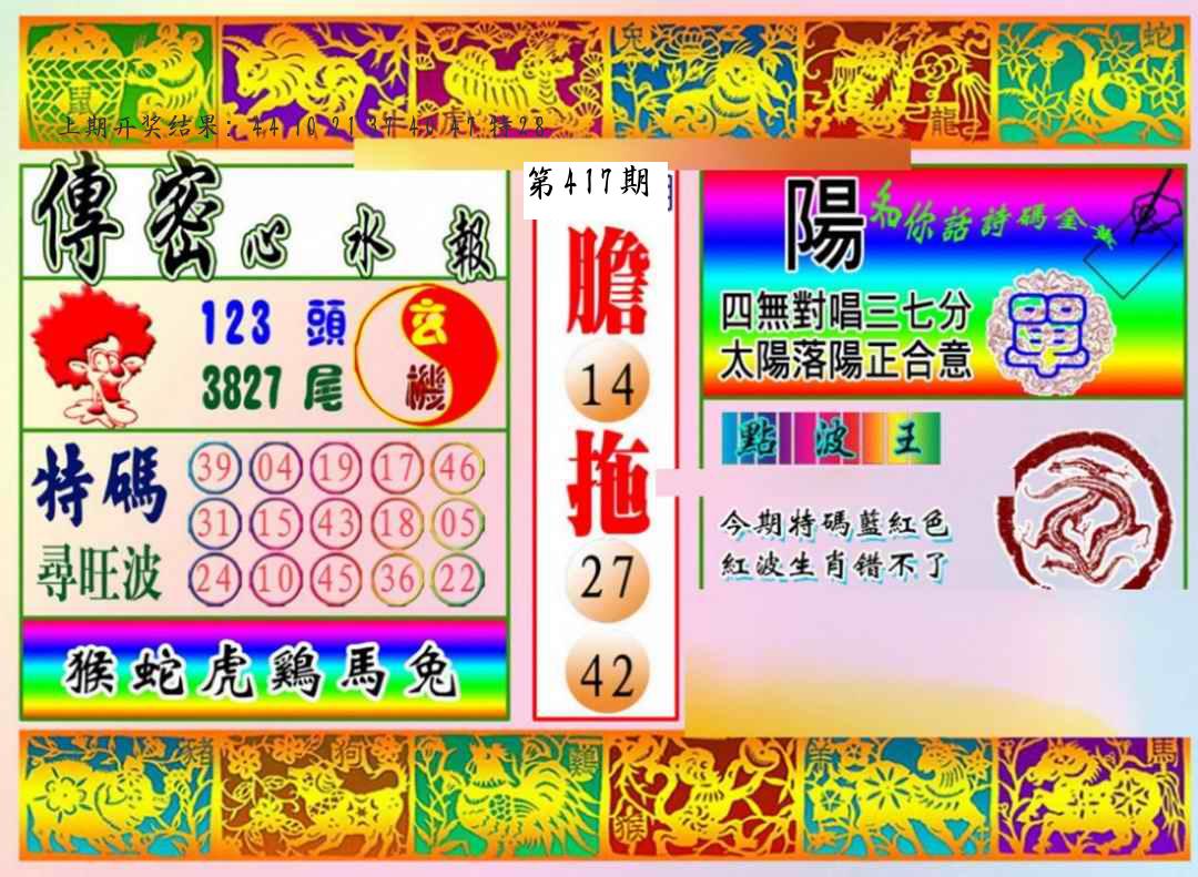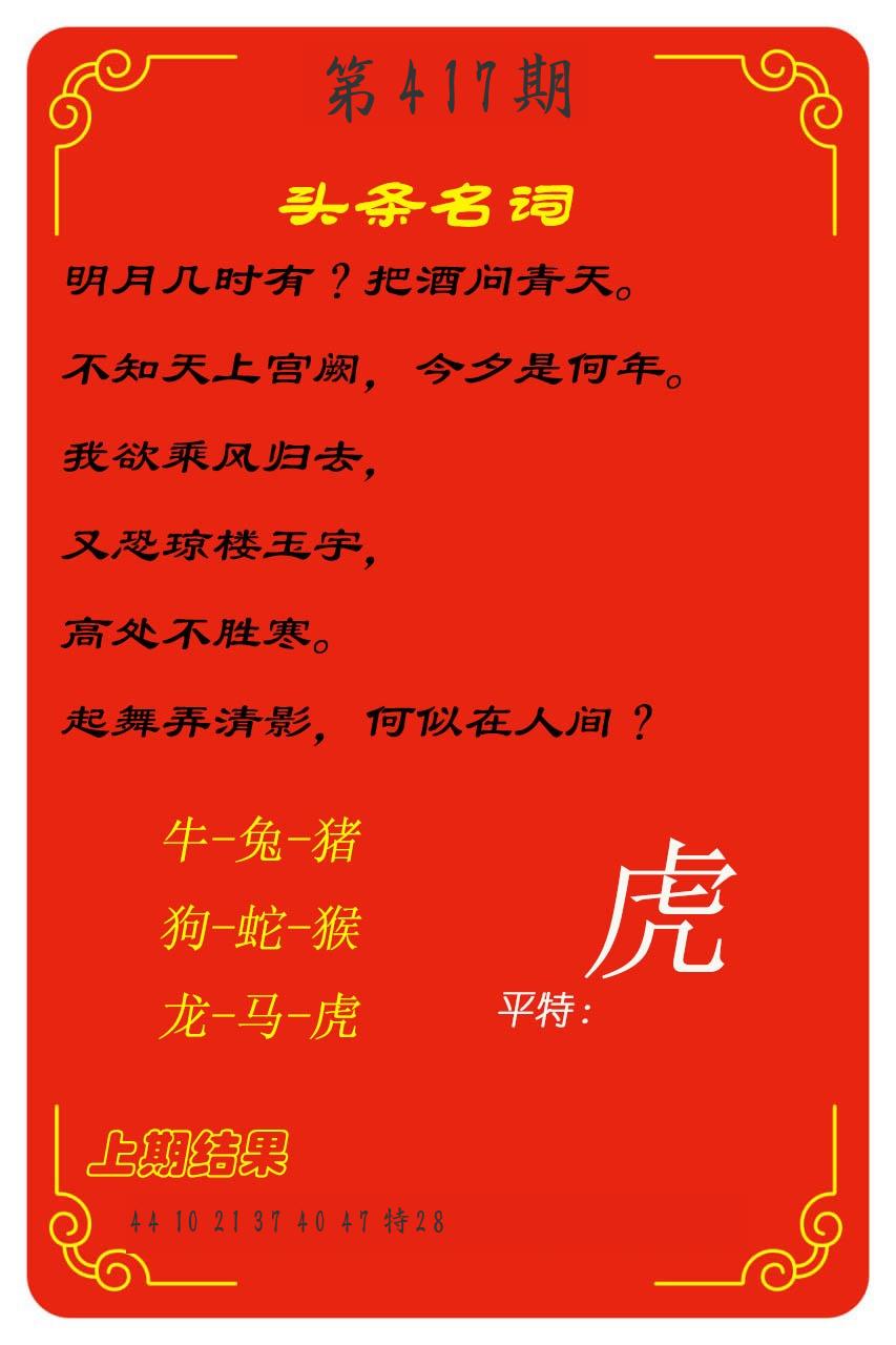 0417期绝杀1.肖1.尾 【虎肖3尾】 开 ??????? |