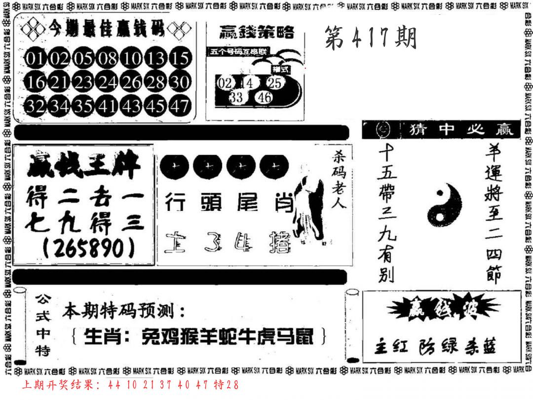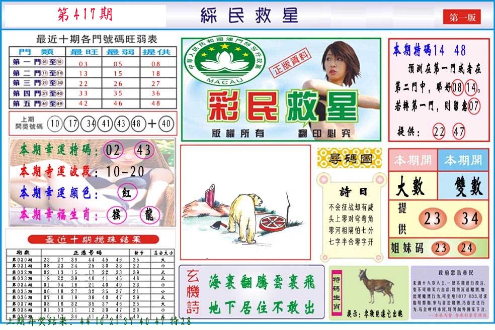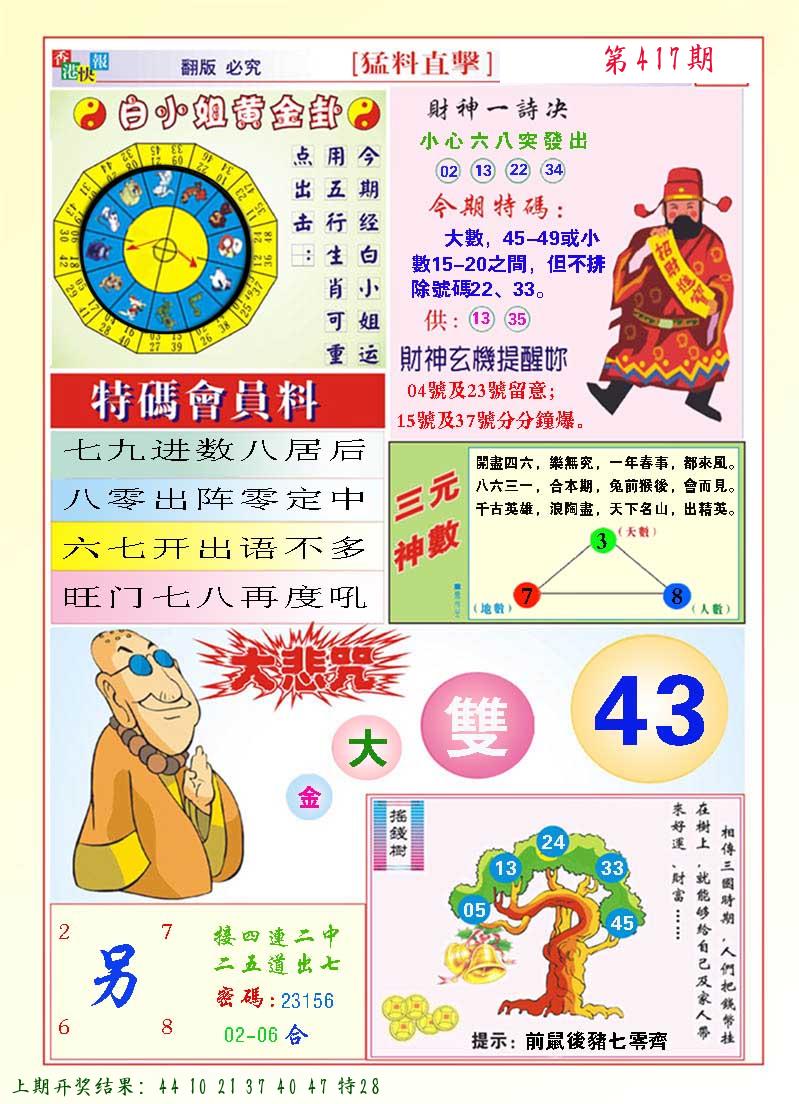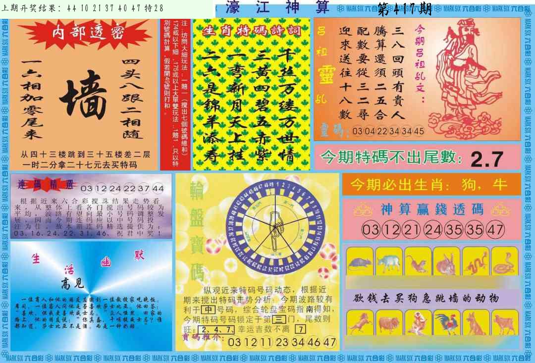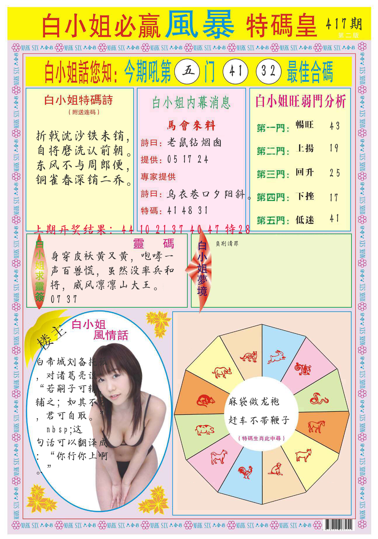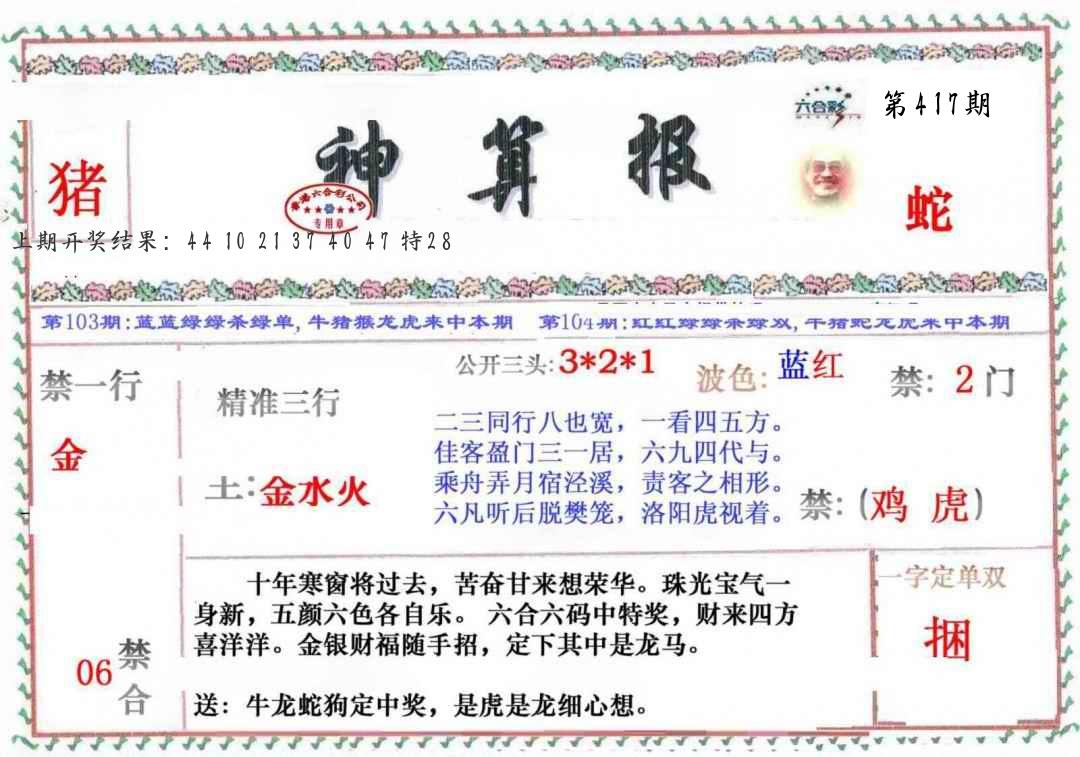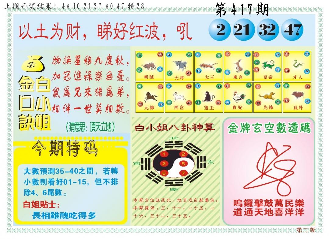 0417期绝杀1.肖1.尾 【虎肖3尾】 开 ??????? |
