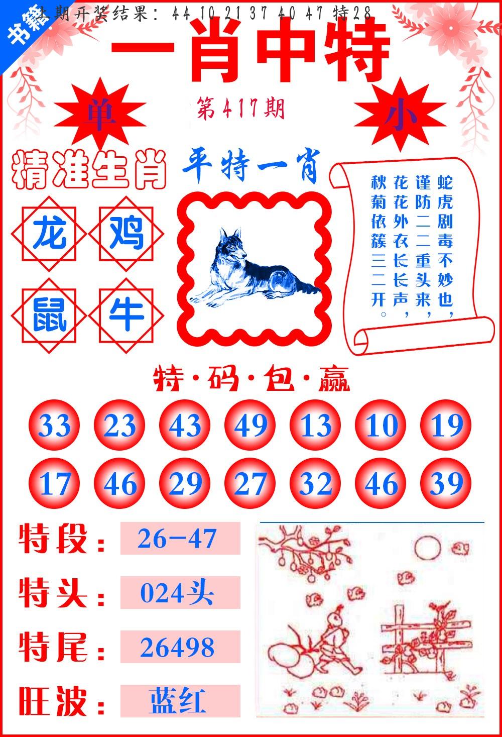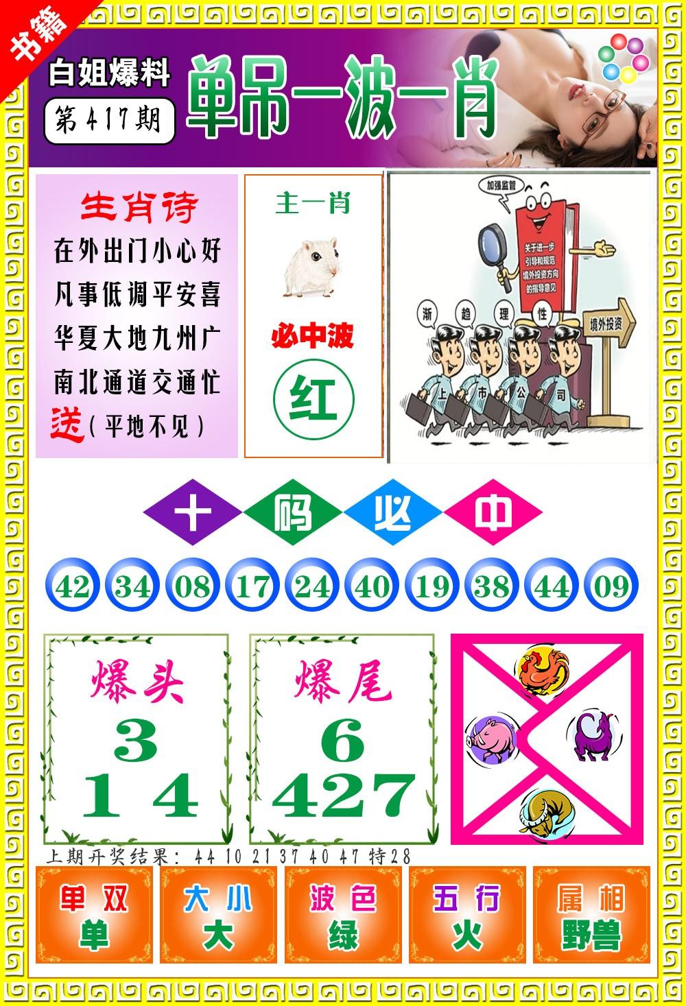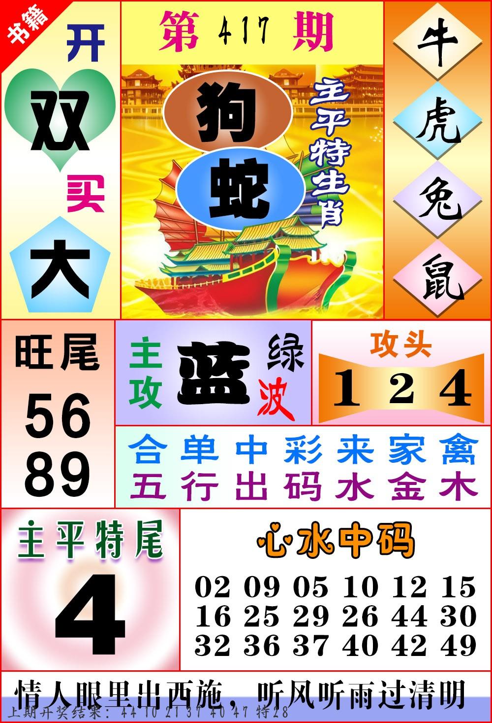 | 0417期推荐九肖: 狗蛇兔龙鸡虎羊猴猪 -平均压 |