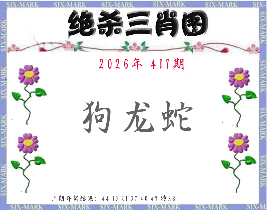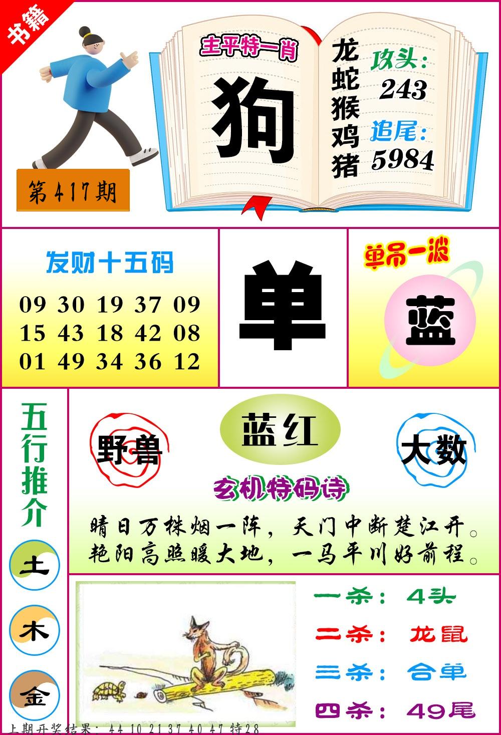 | 0417期推荐三肖: 狗蛇兔 ~~稳准狠 |